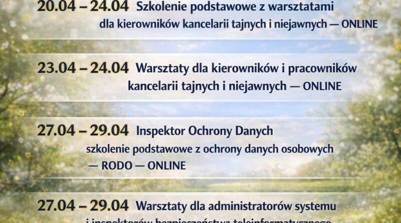 Czytaj dalejW kwietniu zaplanowaliśmy szkolenia stacjonarne w Hotelu Elbrus w Szczyrku. Zachęcamy do uczestnictwa w szkoleniach: 13.04 – 15.04 Inspektor Ochrony