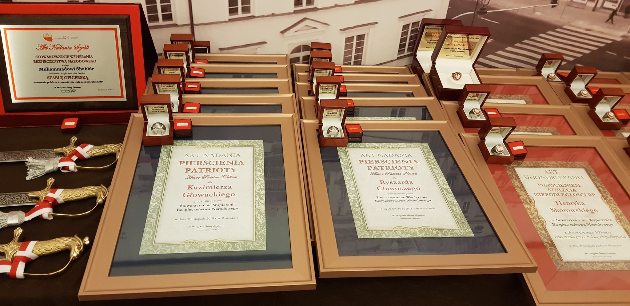 Na tę niepowtarzalną okoliczność Stowarzyszenie postanowiło uhonorować ,,Pierścieniem Patrioty” oraz ,,Pierścieniem Stulecia Niepodległości RP”, wyjątkowe osobowości, które walczyły o niepodległość naszego państwa i działały na rzecz jego suwerenności, zasłużyły się dla bezpieczeństwa kraju, wniosły istotny wkład dla dobra publicznego, przemian demokratycznych oraz rozwoju gospodarki.